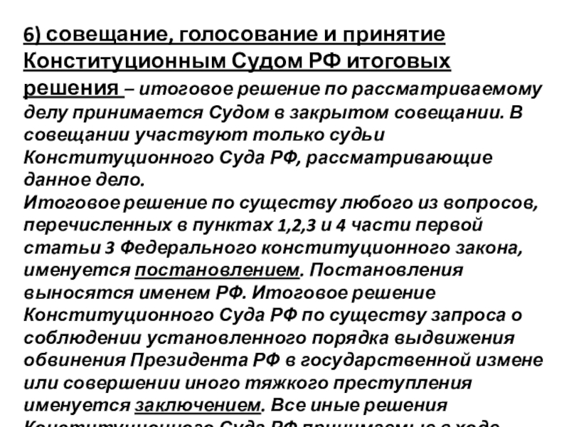 Слайд 166) совещание, голосование и принятие Конституционным Судом РФ итоговых решения