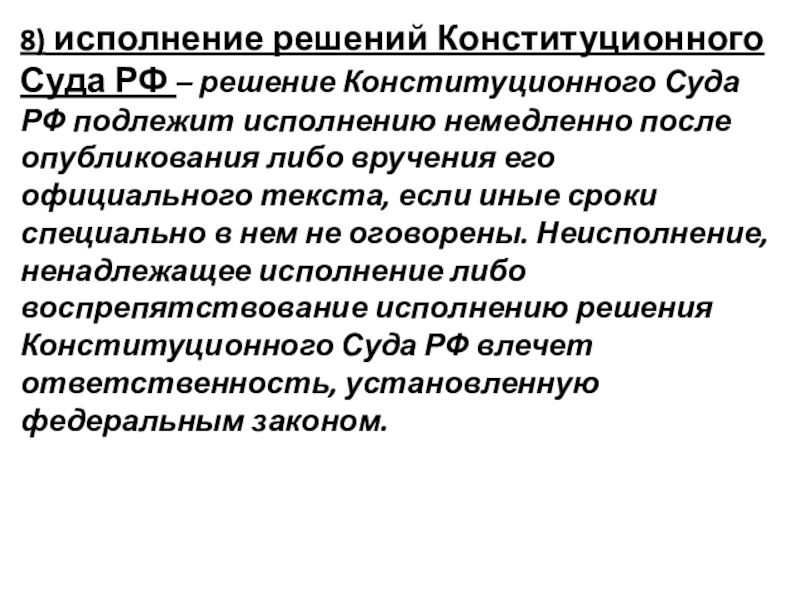 Слайд 188) исполнение решений Конституционного Суда РФ – решение Конституционного Суда