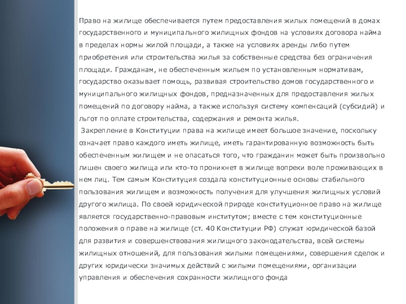 гарантированную для каждого гражданина возможность быть обеспеченным постоянным жилищем;