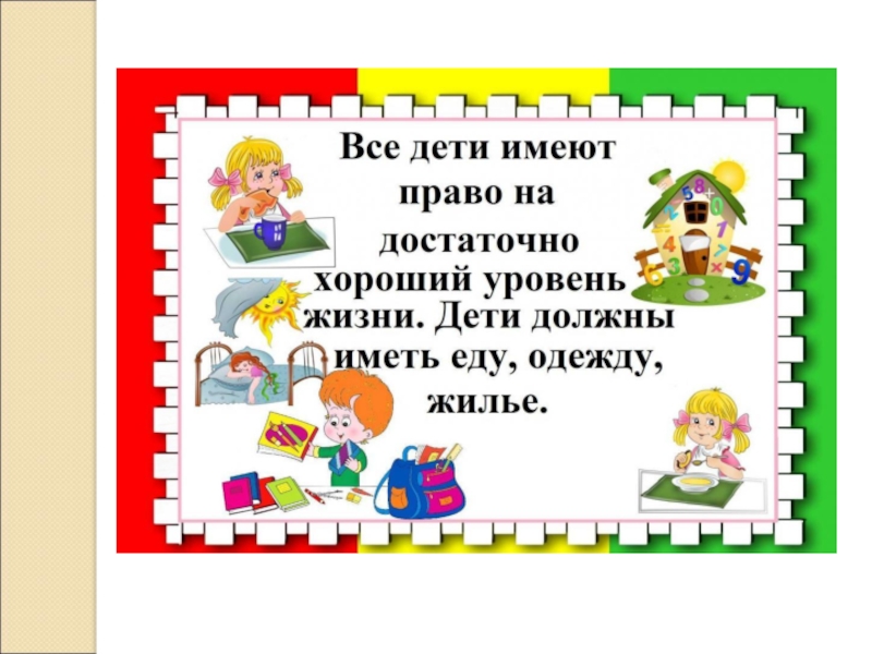 Слайд 6Согласно Конституции, у детей есть такие же права, как у