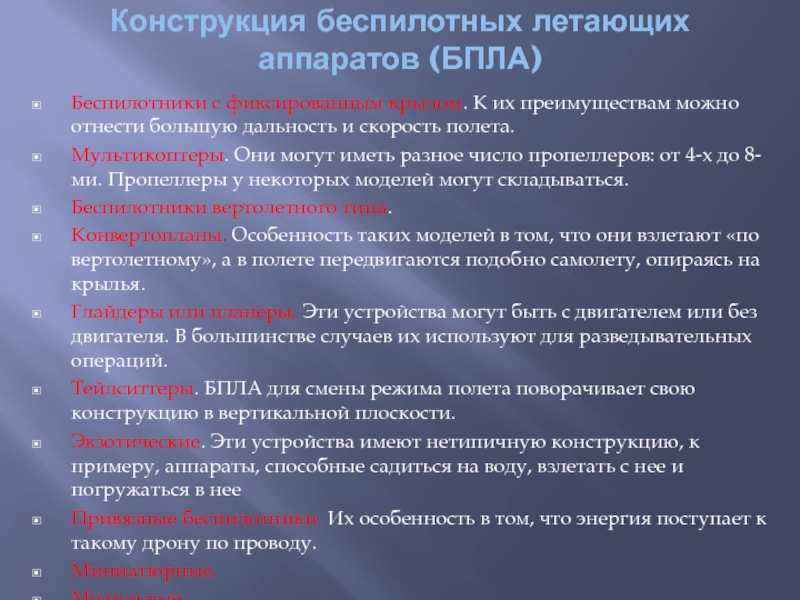 Слайд 5Конструкция беспилотных летающих аппаратов (БПЛА)