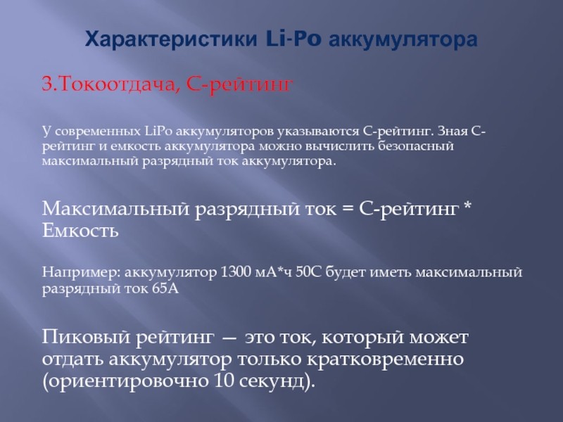 С-рейтинг и емкость аккумулятора можно вычислить безопасный максимальный разрядный ток