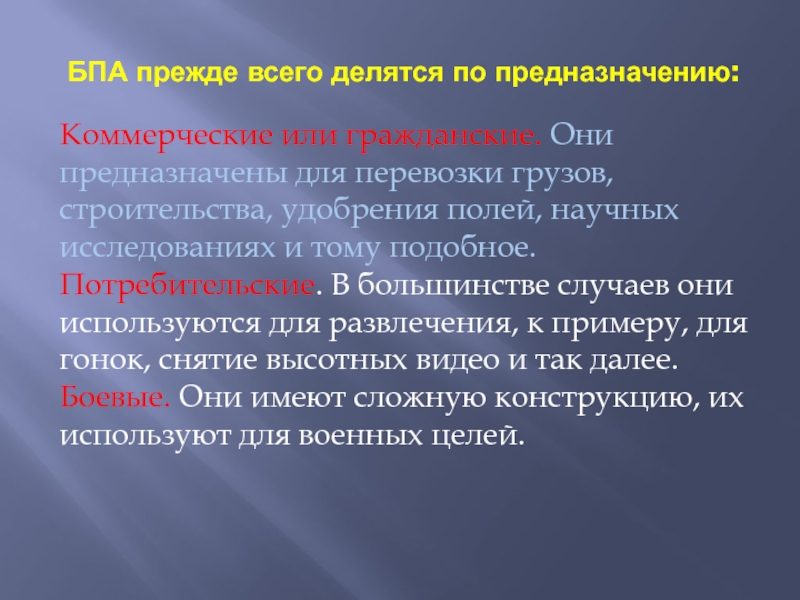 Потребительские. В большинстве случаев они используются для развлечения, к примеру, для гонок, снятие высотных видео и так далее.