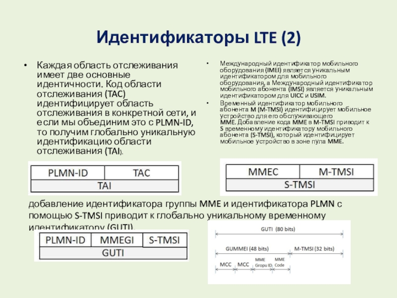 добавление идентификатора группы MME и идентификатора PLMN с помощью S-TMSI приводит к глобально уникальному временному идентификатору (GUTI).