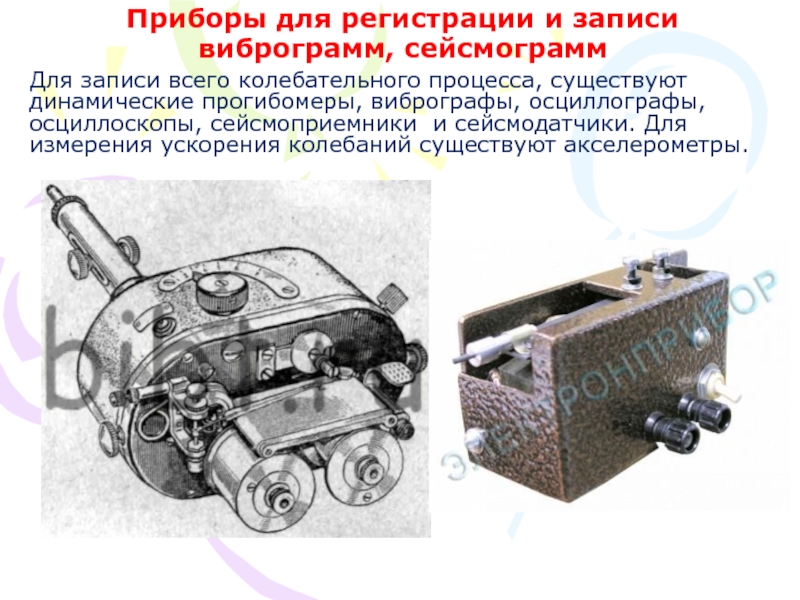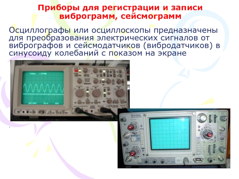 Слайд 22Приборы для регистрации и записи виброграмм, сейсмограмм