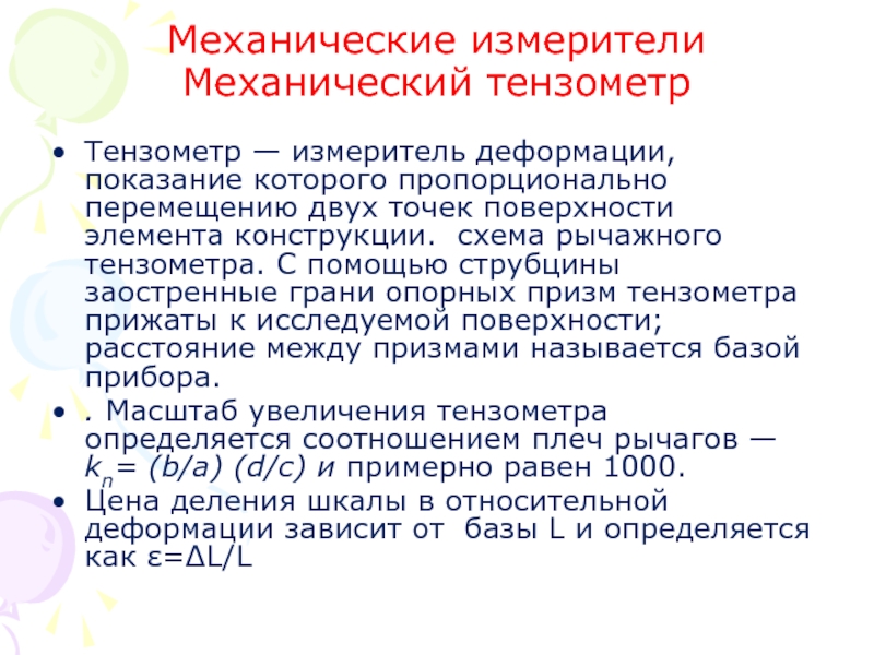 Слайд 10Механические измерители Механический тензометр