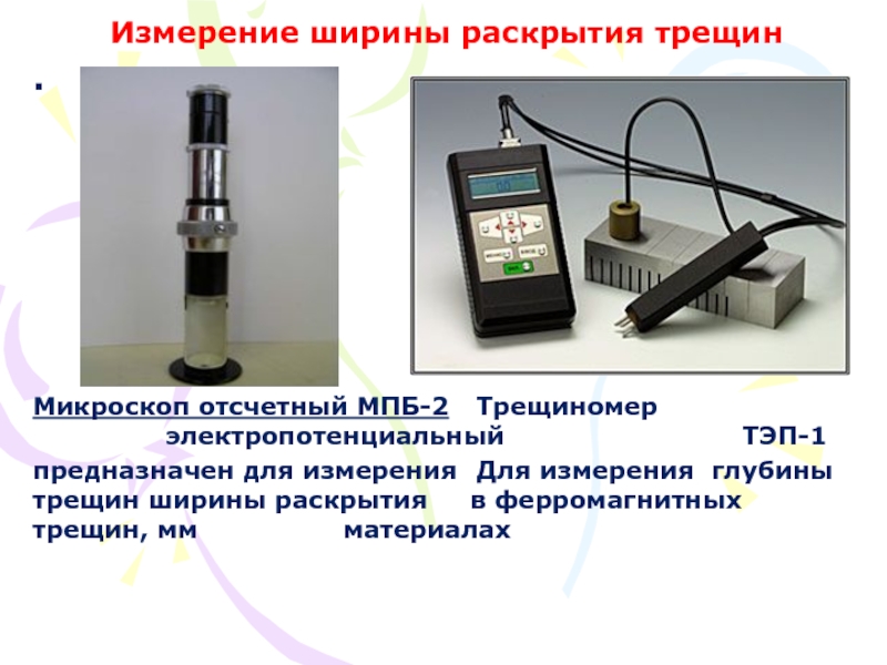 Слайд 18Измерение ширины раскрытия трещин