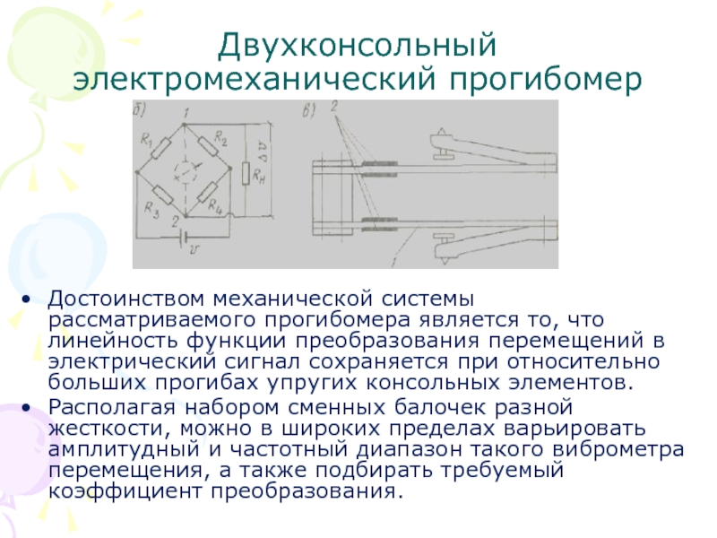 Слайд 41Двухконсольный электромеханический прогибомер