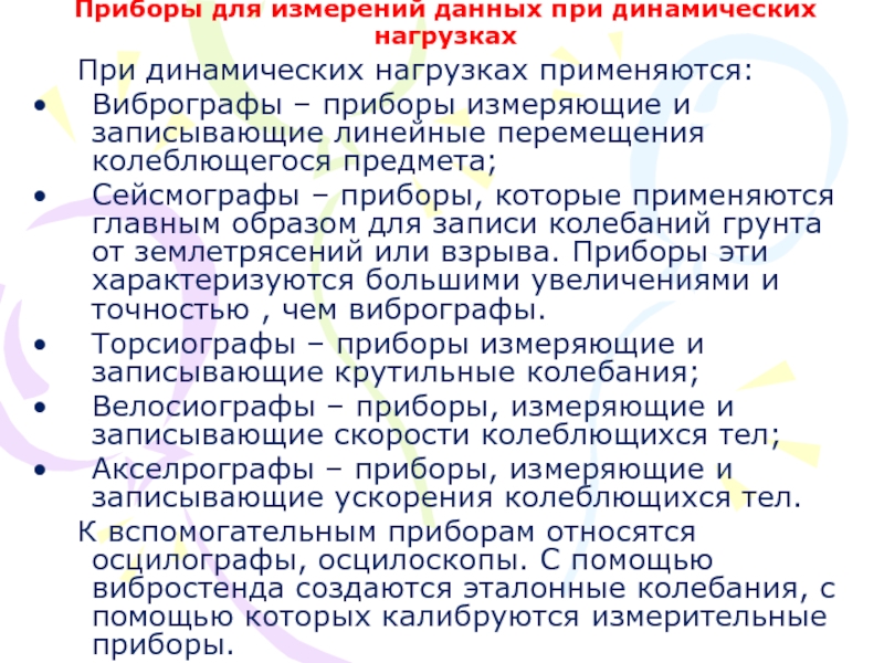 Слайд 19Приборы для измерений данных при динамических нагрузках