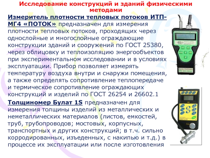 Слайд 33Исследование конструкций и зданий физическими методами
