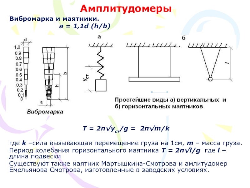 Существуют также маятник Мартышкина-Смотрова и амлитудомер Емельянова Смотрова, изготовленные в заводских условиях.