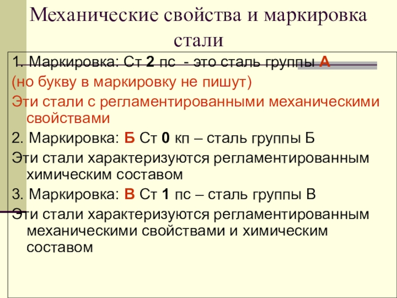 Механические свойства и маркировка стали1. Маркировка: Ст 2 пс - это сталь группы А(но букву в маркировку