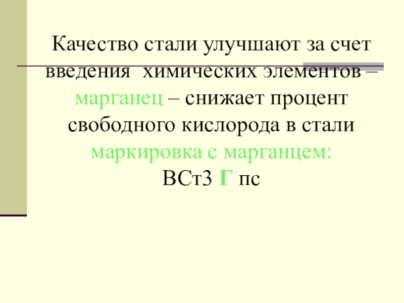 – снижает процент свободного кислорода в стали маркировка с марганцем: ВСт3 Г