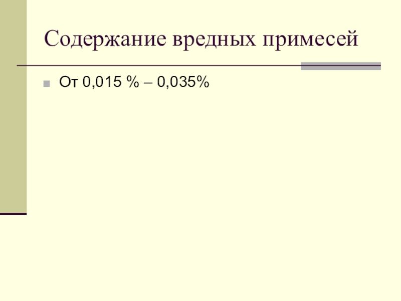 Содержание вредных примесейОт 0,015 % – 0,035%