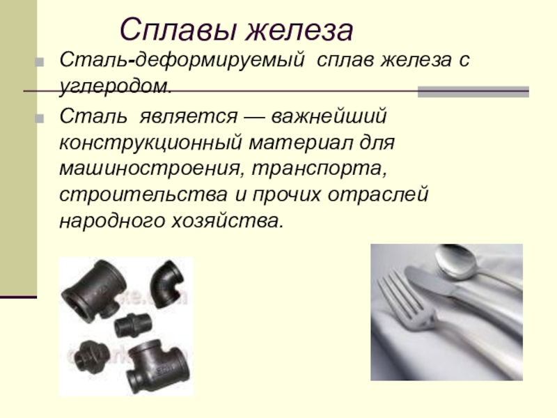 Сплавы железа Сталь-деформируемый сплав железа с углеродом. Сталь