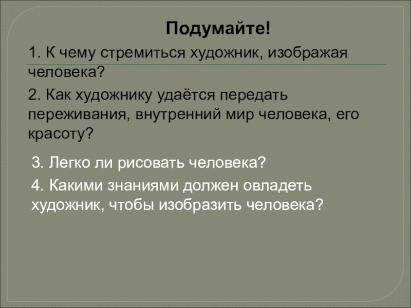 4. Какими знаниями должен овладеть художник, чтобы изобразить человека?