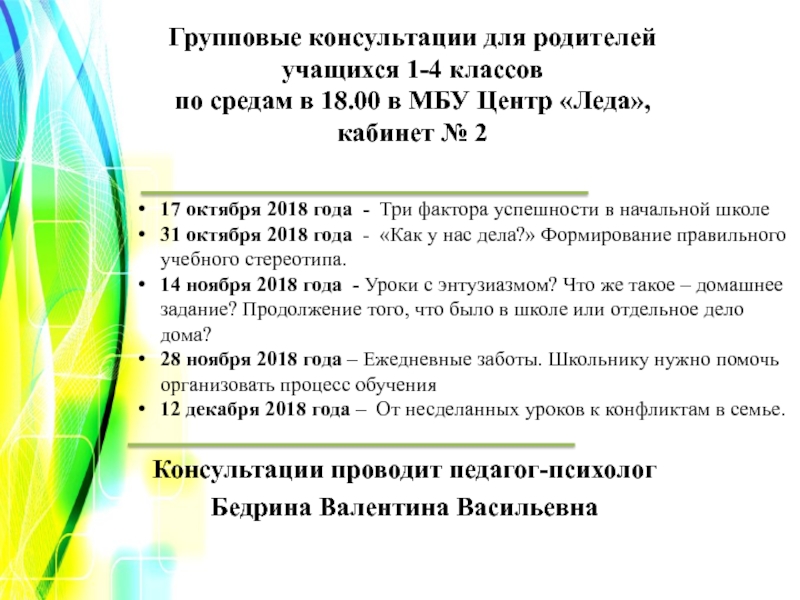 Групповые консультации для родителей