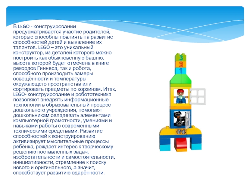 Слайд 5В LEGO - конструировании предусматривается участие родителей, которые способны повлиять