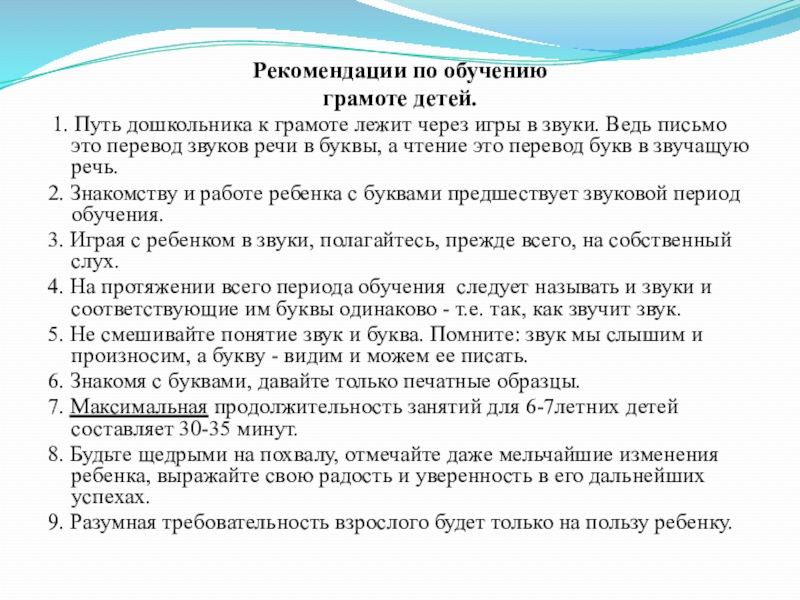 2. Знакомству и работе ребенка с буквами предшествует звуковой период обучения.