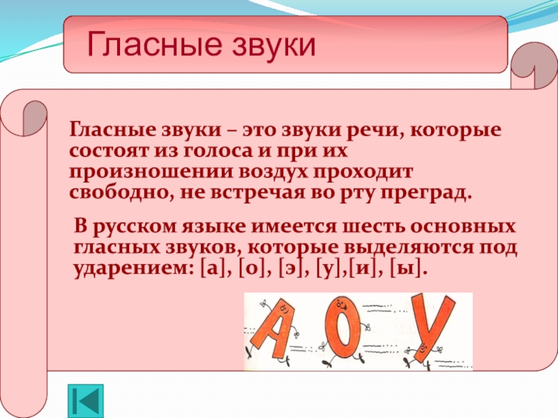 В русском языке имеется шесть основных гласных звуков, которые выделяются под ударением: [а], [о], [э], [у],[и], [ы].