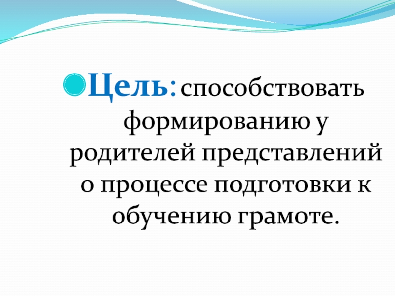 Слайд 2Цель: способствовать формированию у родителей представлений о процессе подготовки к