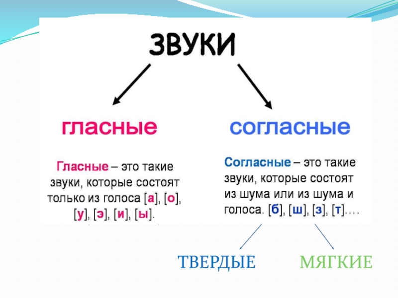 - знакомство с терминами: «звук», «слог», «слово», «предложение», звуки гласные, согласные, твёрдые, мягкие;