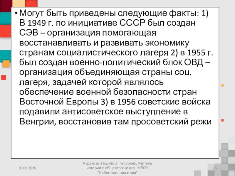 Рудакова Людмила Петровна, учитель истории и обществознания. МБОУ "Хибинская гимназия"