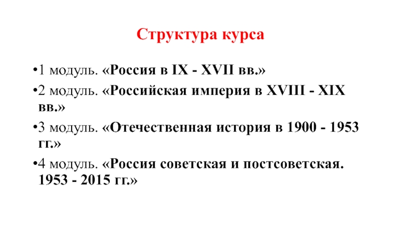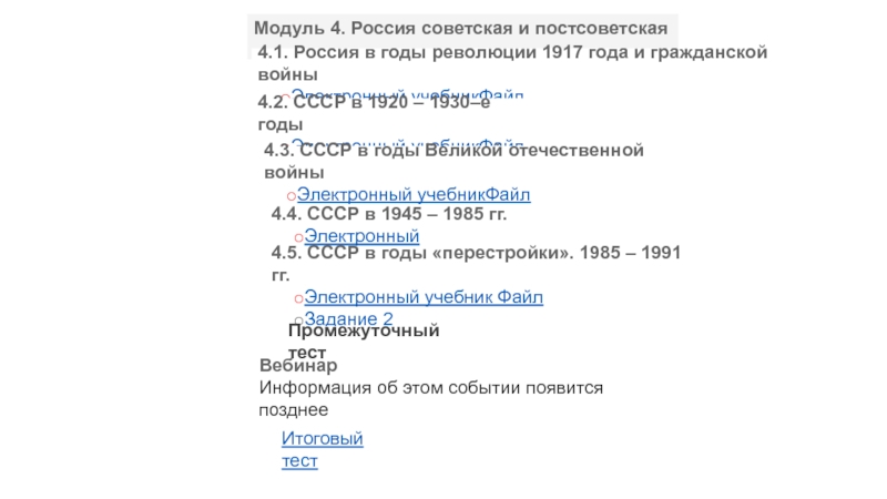 в 1900 - 1953 гг.»4 модуль. «Россия советская и постсоветская. 1953 - 2015 гг.»