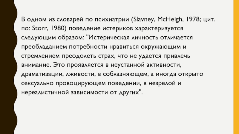 Слайд 2В одном из словарей по психиатрии (Slavney, McHeigh, 1978; цит.