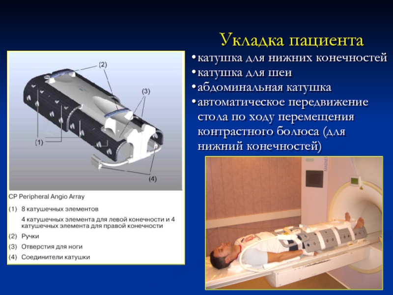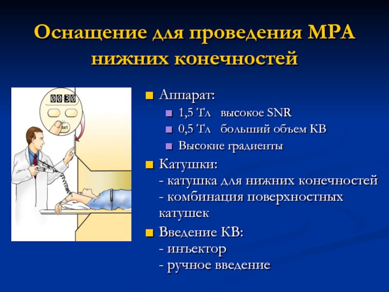 Слайд 6Оснащение для проведения МРА нижних конечностей