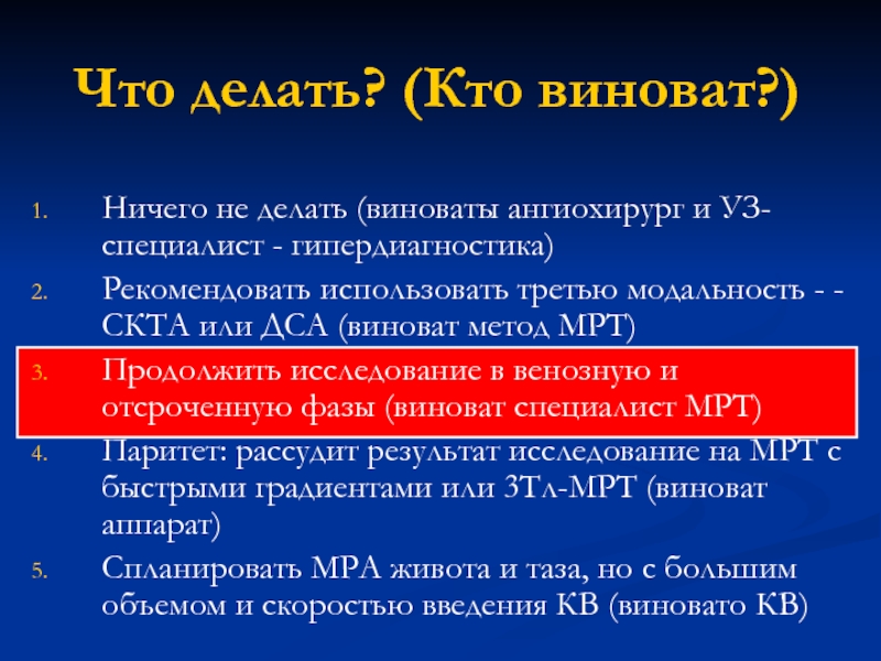 исследование на более современном аппарате (1,5Тл с быстрыми градиентами; 3Тл; динамическая МРА) или рентгеновская ангиография)