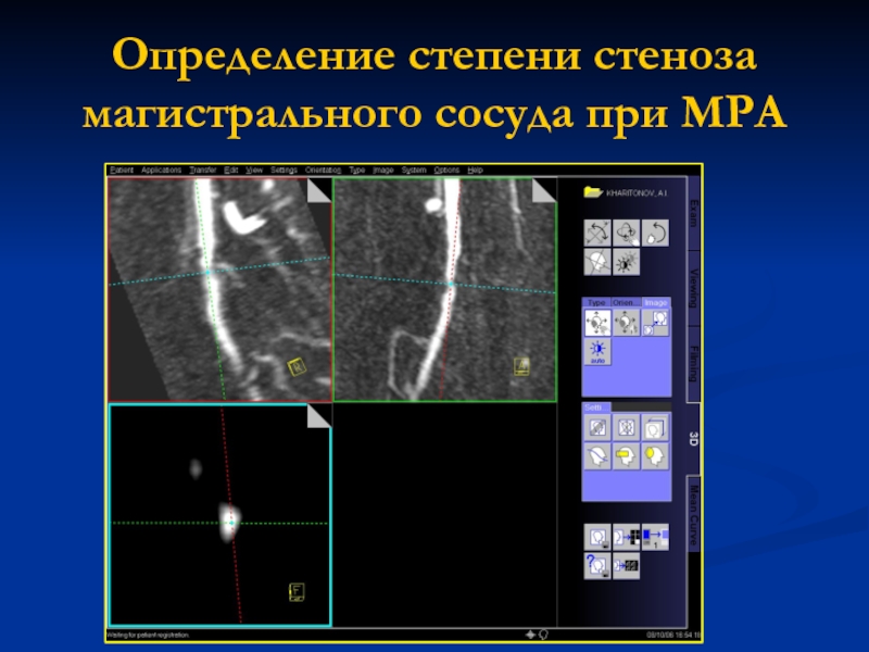 Слайд 34Определение степени стеноза магистрального сосуда при МРА
