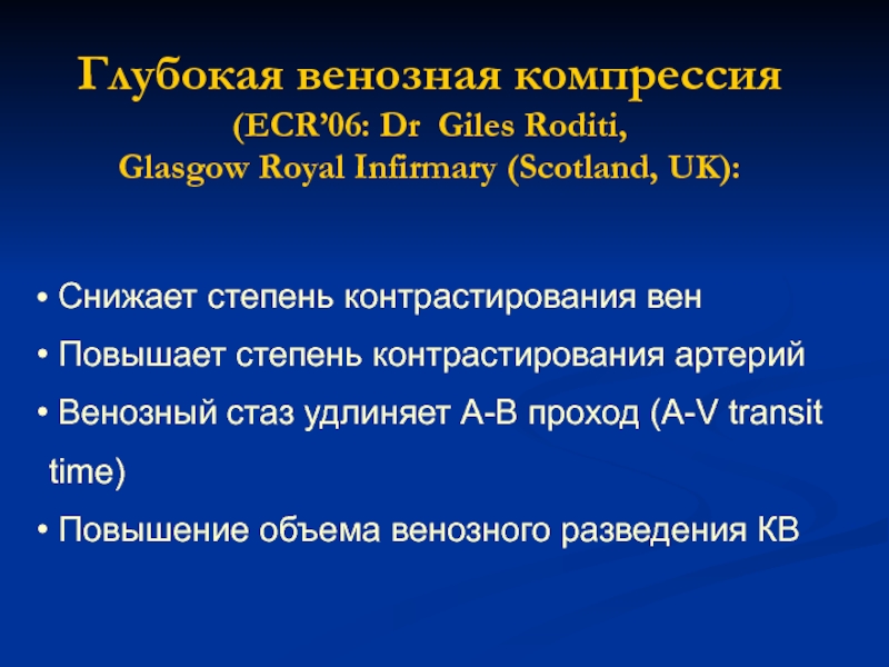 Слайд 45Глубокая венозная компрессия (ECR’06: Dr Giles Roditi,