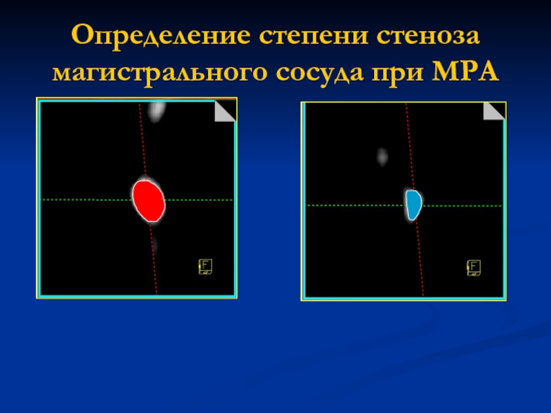 Слайд 33Определение степени стеноза магистрального сосуда при МРА
