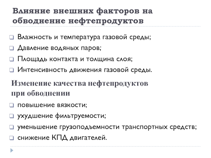 Слайд 33Влияние внешних факторов на обводнение нефтепродуктов