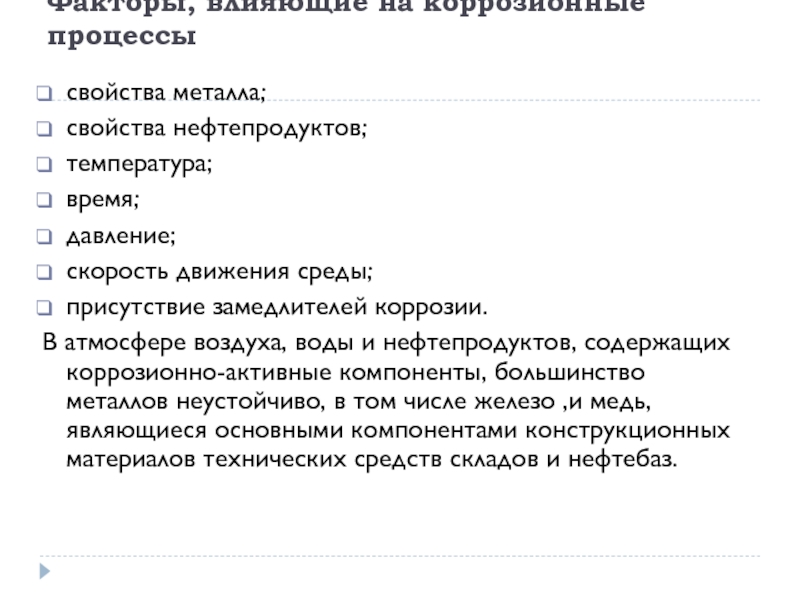 Слайд 30Факторы, влияющие на коррозионные процессы