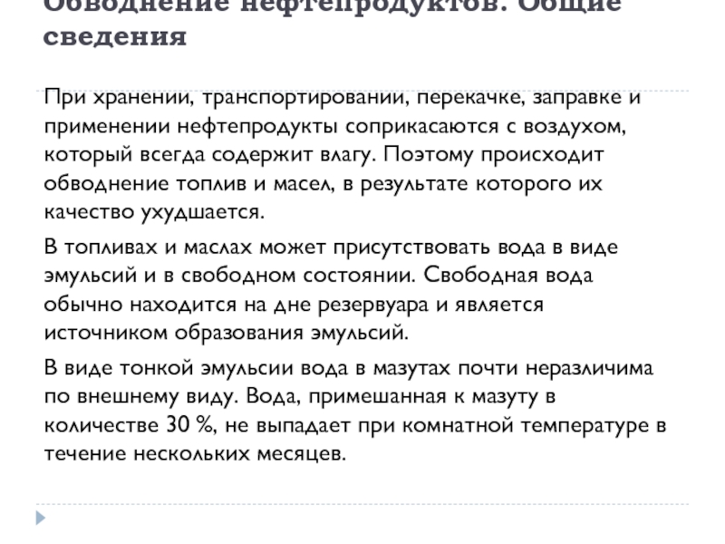 Слайд 32Обводнение нефтепродуктов. Общие сведения