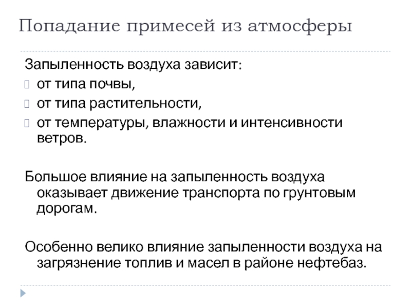 Особенно велико влияние запыленности воздуха на загрязнение топлив и масел в районе нефтебаз.