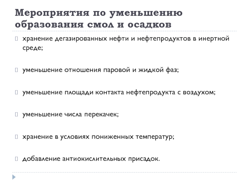 Слайд 26Мероприятия по уменьшению образования смол и осадков