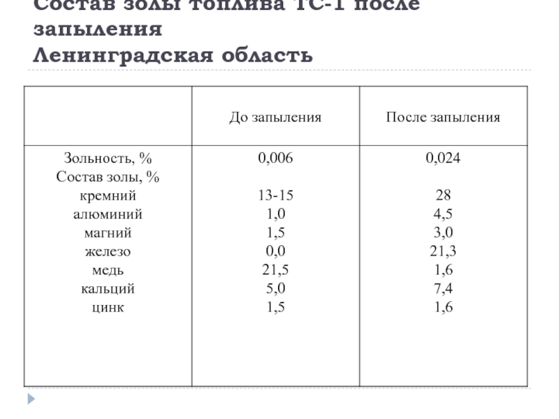 Слайд 14Состав золы топлива ТС-1 после запыления