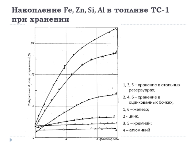 железа, алюминия, кремния. При хранении в оцинкованных резервуарах содержание цинка в нефтепродуктах неуклонно увеличивается.