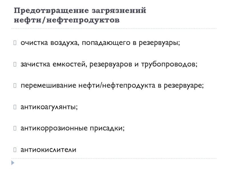 Слайд 23Предотвращение загрязнений нефти/нефтепродуктов