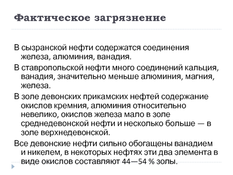 ставропольской нефти много соединений кальция, ванадия, значительно меньше алюминия, магния,