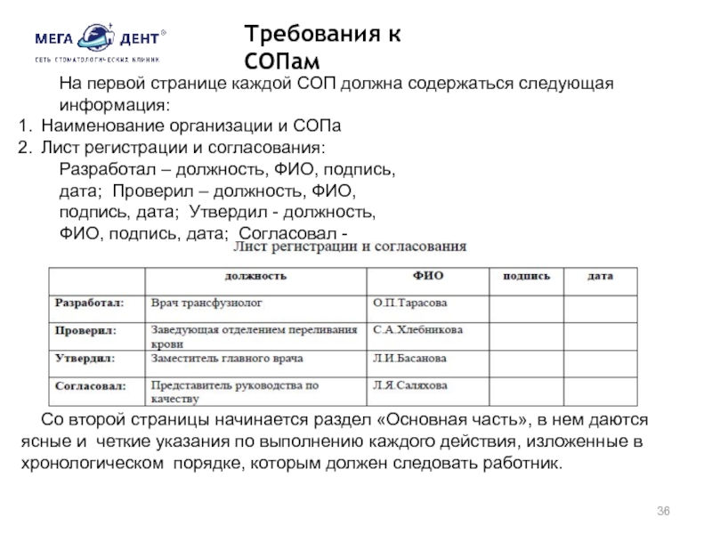 Слайд 36На первой странице каждой СОП должна содержаться следующая информация: