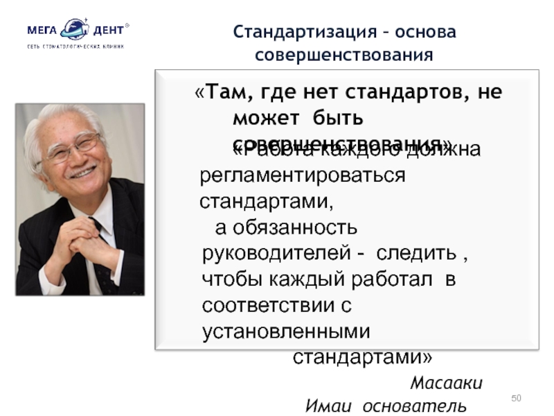 Слайд 50«Там, где нет стандартов, не может быть совершенствования»