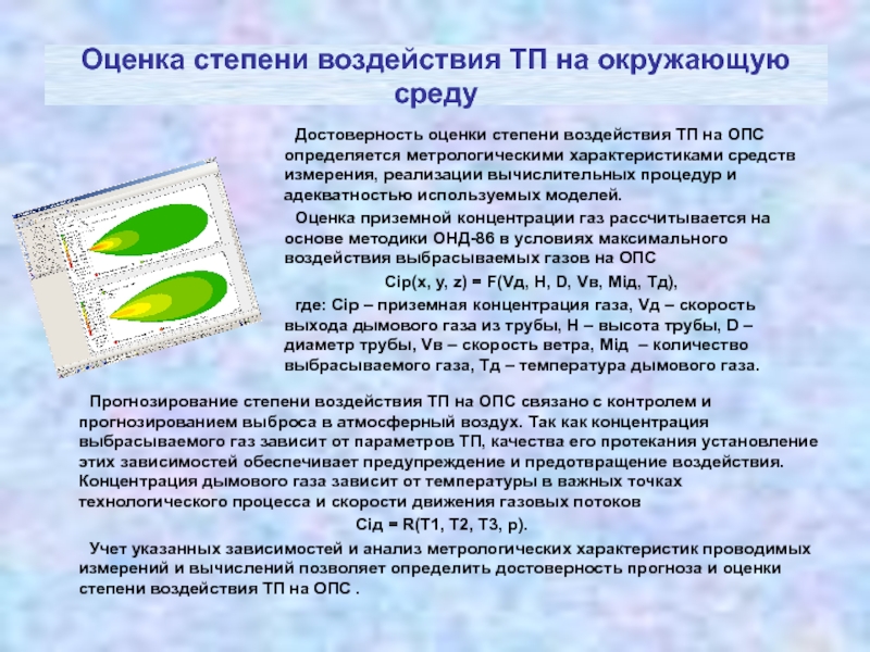 Учет указанных зависимостей и анализ метрологических характеристик проводимых измерений и вычислений позволяет определить достоверность прогноза и оценки степени воздействия ТП на ОПС .