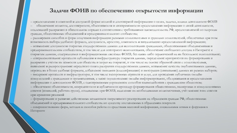 Слайд 9Задачи ФОИВ по обеспечению открытости информации
