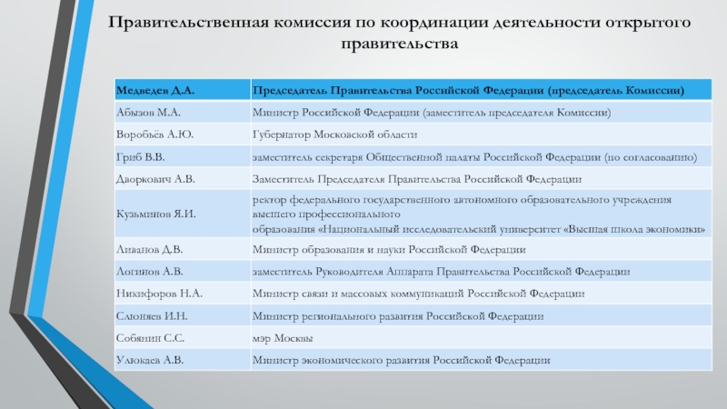– обеспечение объективности, непредвзятости и публичности процедур формирования общественных, экспертных и консультативных советов (комиссий, рабочих групп), создаваемых при ФОИВ, наделение их необходимыми полномочиями, учёт мнение этих советов при принятии решений