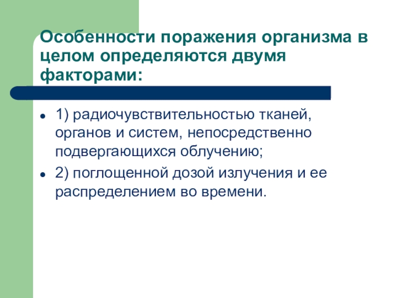 Слайд 19Особенности поражения организма в целом определяются двумя факторами: