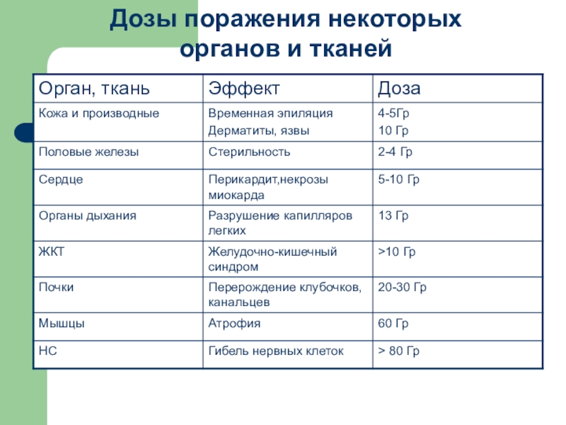 Слайд 17Дозы поражения некоторых